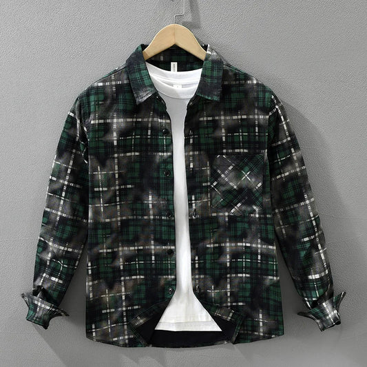 Abstract Plaid Flannel Overshirt