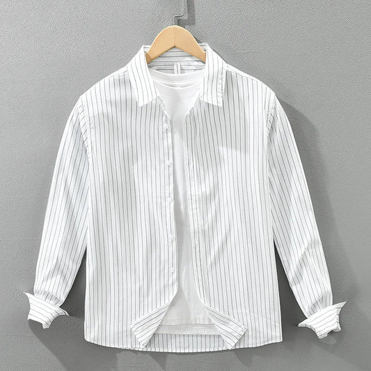 A staple for any refined wardrobe, this pinstripe shirt offers a sophisticated look with an...