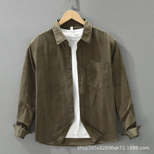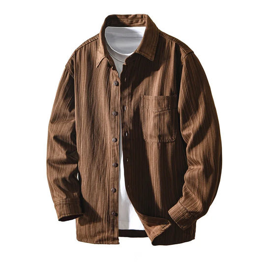 Elevate your casual wardrobe with this versatile overshirt, designed with a distinct vertical ribbed texture...