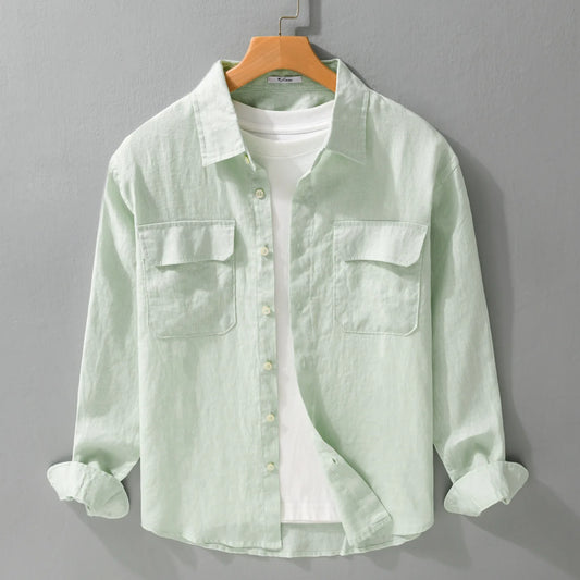 Premium Long Sleeve Linen Henley Shirt
