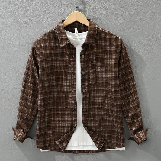 Layer with purpose. This micro-grid flannel overshirt delivers classic style with modern versatility—perfect for layering...