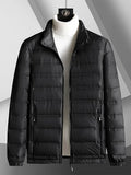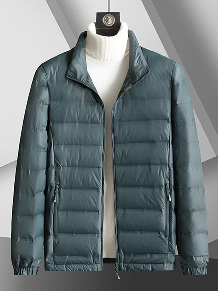 Esta chaqueta de invierno para hombre ofrece una calidez fiable gracias a su relleno de plumón de pato blanco al 80% y su tejido grueso y resistente al viento. Diseñada para el uso diario, presenta un corte clásico con mangas largas, cuello alto y prácticos bolsillos. Disponible en azul, verde, gris y negro, esta chaqueta informal se cierra con cremallera y está disponible en tallas hasta la 8XL, lo que la hace perfecta para quienes buscan comodidad y estilo durante los meses fríos.