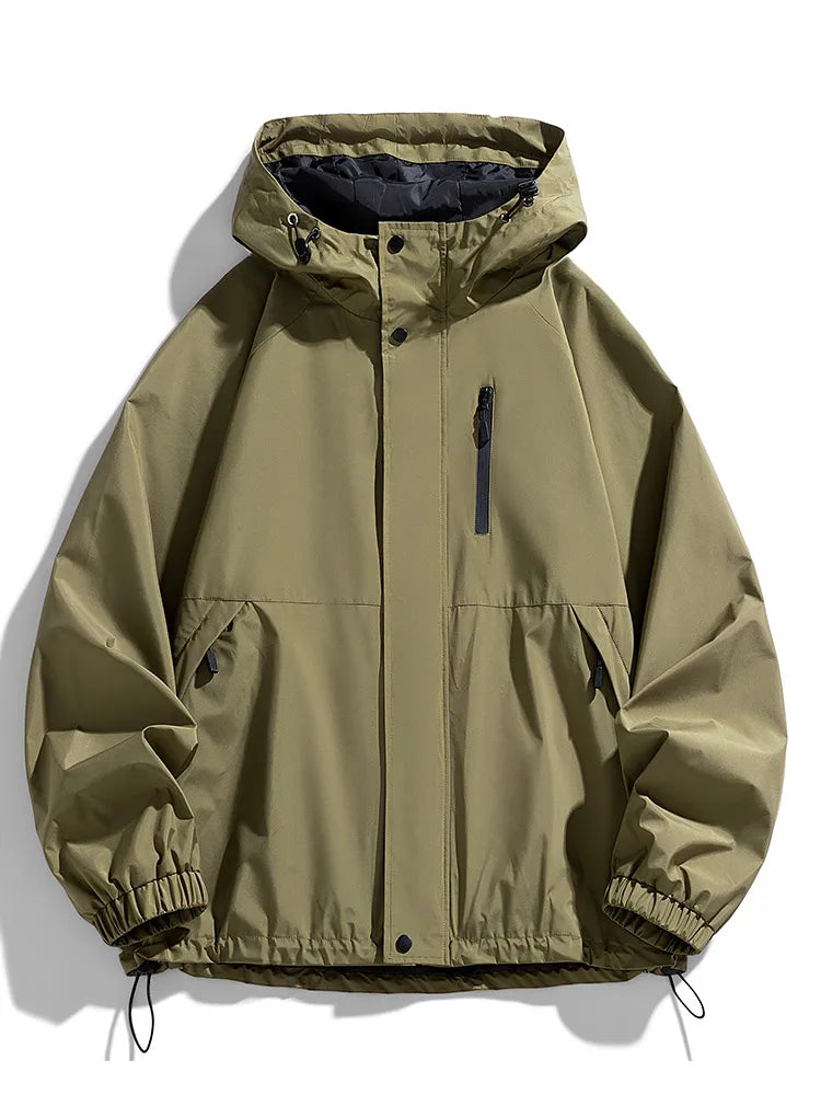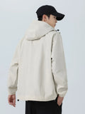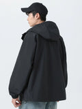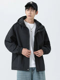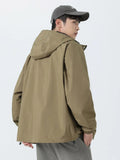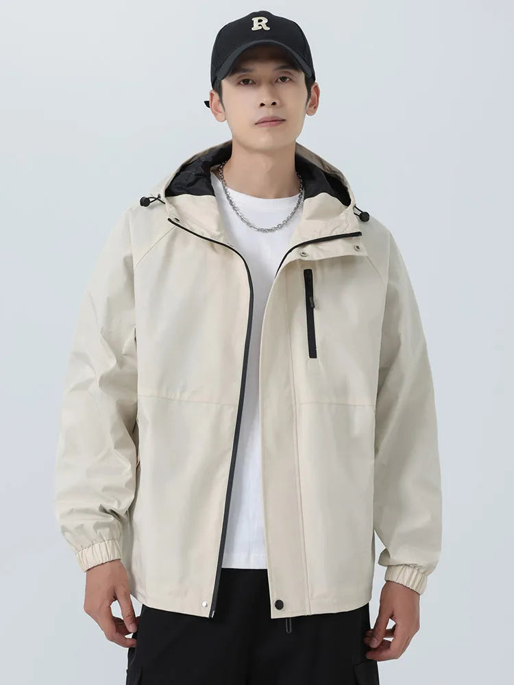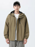 Esta chaqueta cortavientos con capucha para hombre está diseñada para primavera y otoño, con un tejido exterior de poliéster repelente al agua y cortavientos que ofrece una protección fiable. Tiene un corte clásico con cierre de cremallera, puños acanalados y un práctico bolsillo para el día a día. Confeccionada con atención al detalle, incluye un forro de poliéster y está disponible en negro, beige y verde militar. Esta chaqueta de estilo coreano combina funcionalidad con un diseño liso, convirtiéndola en una prenda exterior versátil para el día a día.