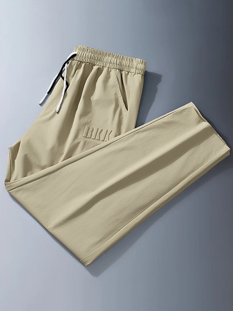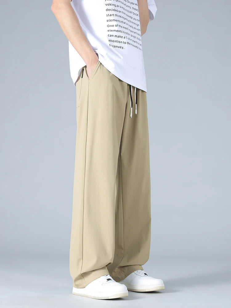 Disfruta de la máxima comodidad en verano con estos pantalones deportivos de seda helada para hombre, diseñados para quienes buscan estilo y funcionalidad. Confeccionados con una mezcla premium de nailon y elastano, estos pantalones ligeros incorporan tecnología de secado rápido, ideal para un verano activo. Su corte holgado y diseño frontal plano ofrece libertad de movimiento, mientras que el cordón ajustable permite un ajuste personalizado. Disponibles en colores versátiles —negro, azul, caqui y gris—, estos pantalones de pierna recta se adaptan a la perfección tanto a salidas informales como a jornadas laborales relajadas. Disponibles en tallas hasta la 8XL, ofrecen el equilibrio perfecto entre transpirabilidad y durabilidad. Adopta un estilo de inspiración coreana sin renunciar a la comodidad ni al rendimiento.