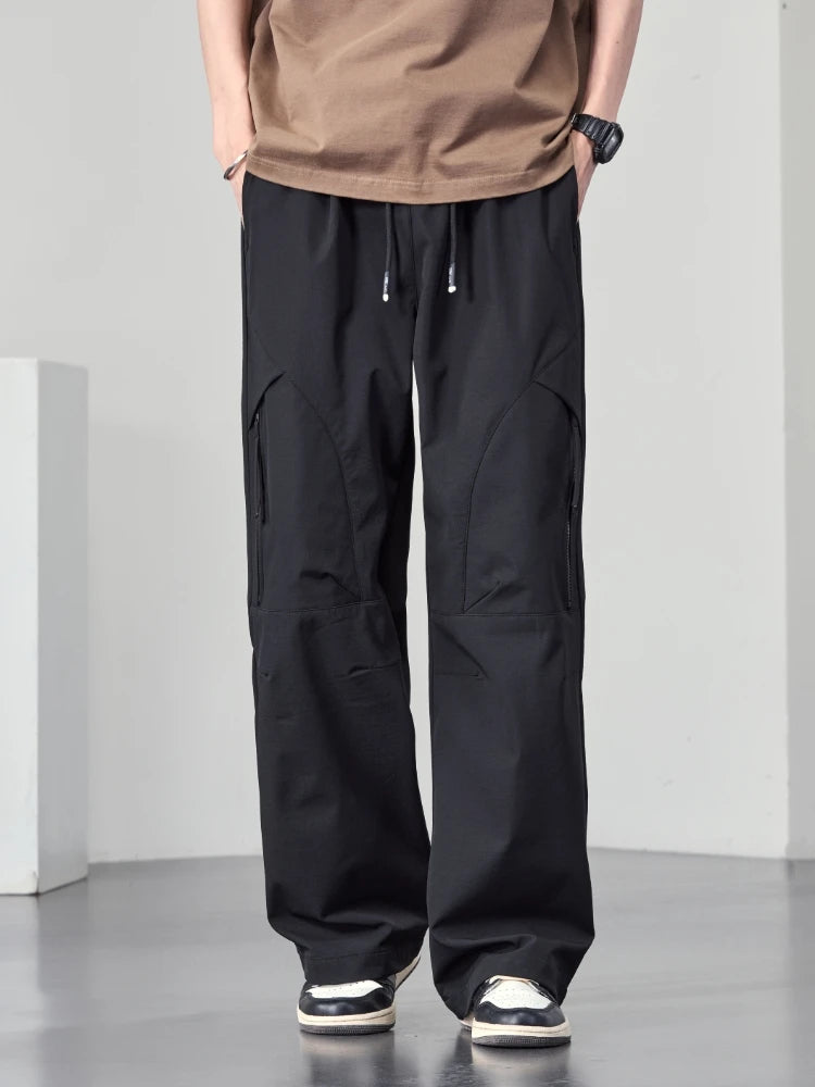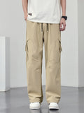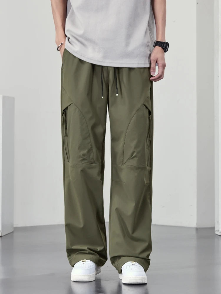 Designed for summer travel, these men's quick-dry cargo pants combine lightweight nylon and spandex for comfort and breathability. Featuring a loose, straight fit with a drawstring closure, they provide ease of movement and a secure fit. Available in black, khaki, and green, the pants include zip pockets for secure storage and are made from broadcloth with tatting craftsmanship. Offered in extensive sizes up to 8XL, these sweatpants are ideal for outdoor activities, delivering cooling ice silk fabric to keep you comfortable all season long.