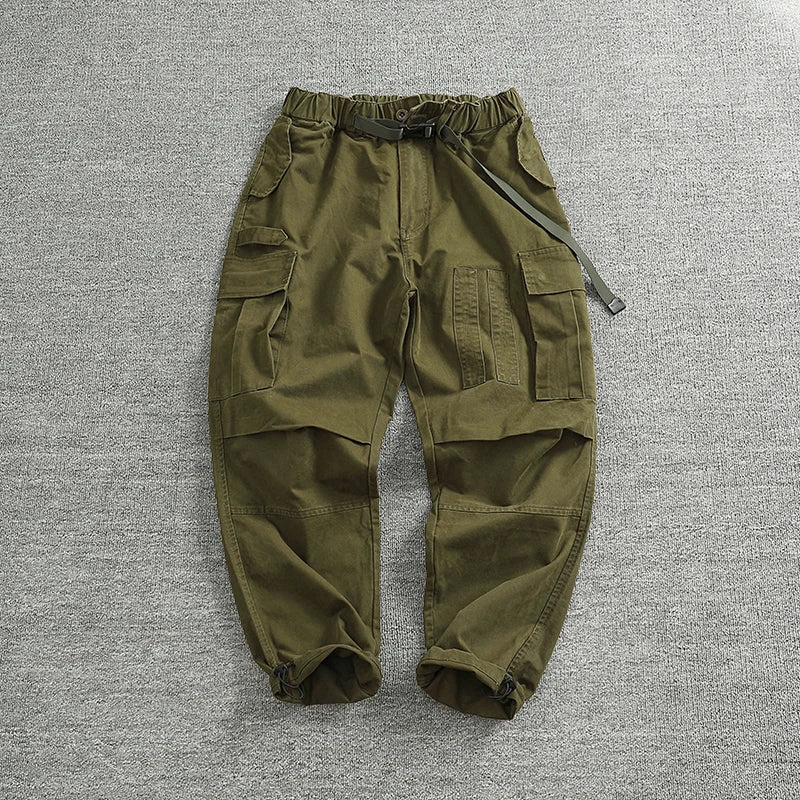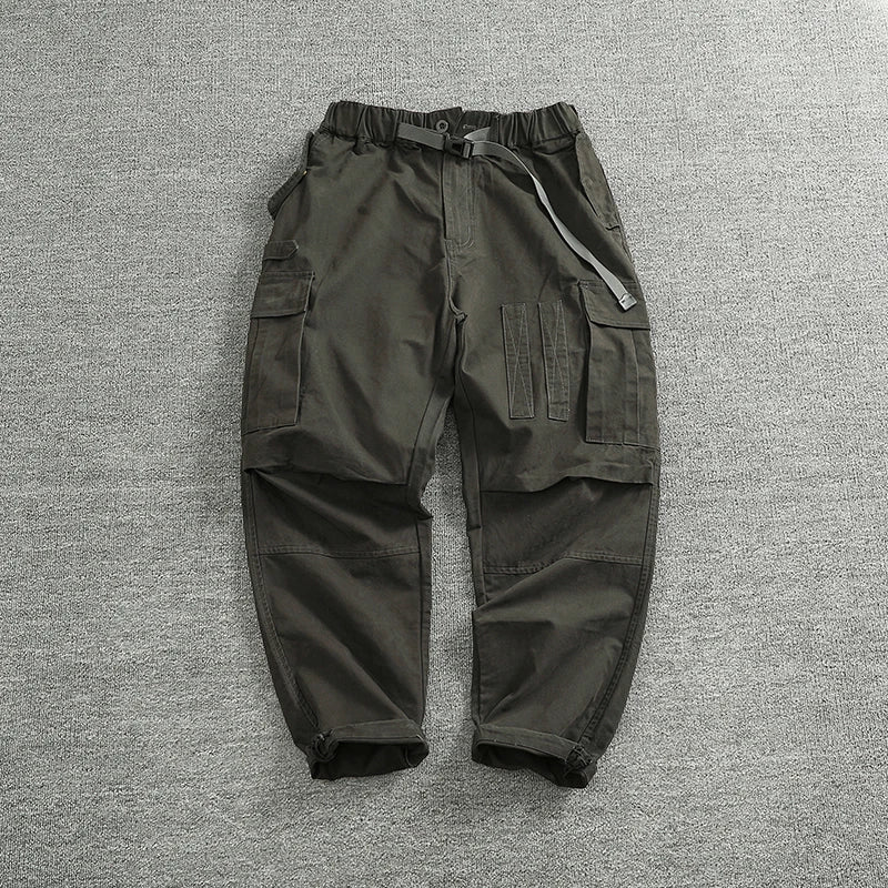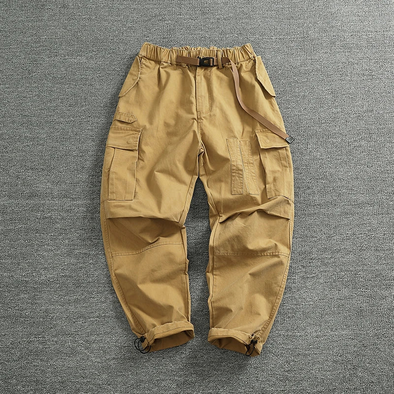 These versatile cargo trousers are designed for both durability and contemporary street style. Crafted from a robust cotton-blend canvas, they feature a relaxed, tapered fit that ensures comfort throughout the day. The design is defined by its functional utility, incorporating multiple spacious bellows pockets with secure flap closures for your essentials.